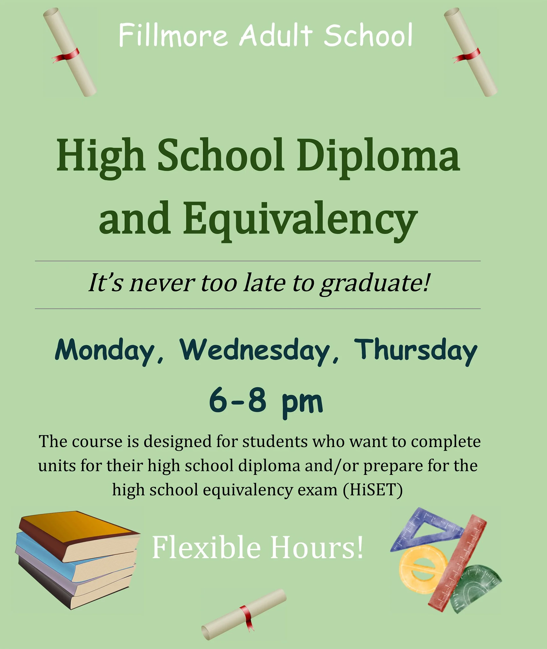 Fillmore Adult School’s Summer Session is in full swing. It is never too late to start. Join today!