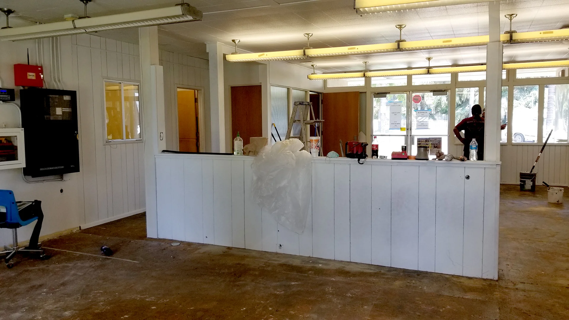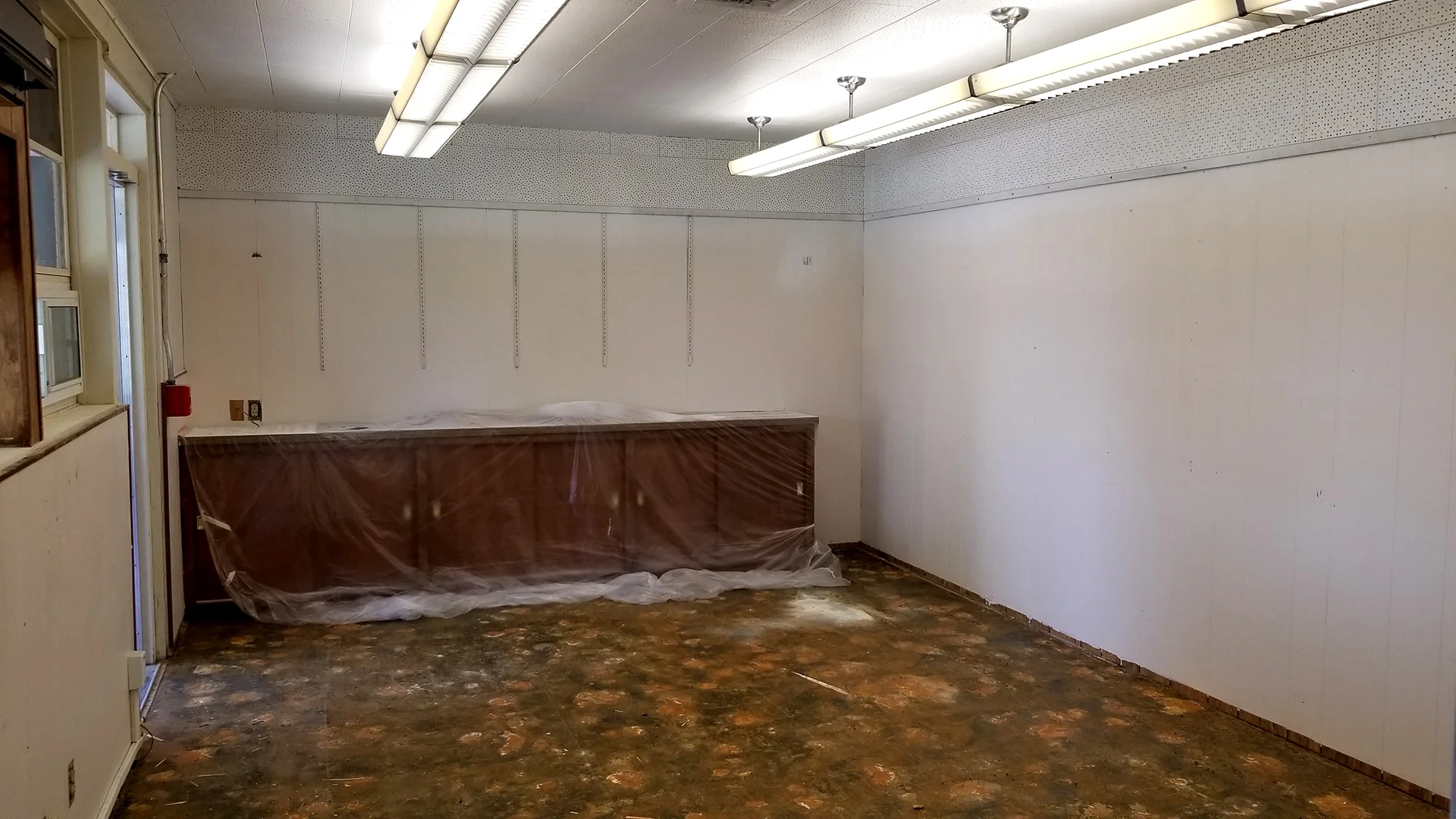 The “freshinging up” of the administration Building (the office) is making great progress. Old carpet is being pulled and new paint is starting to go up. District staff was careful to preserve the classic FHS logo on the wall.