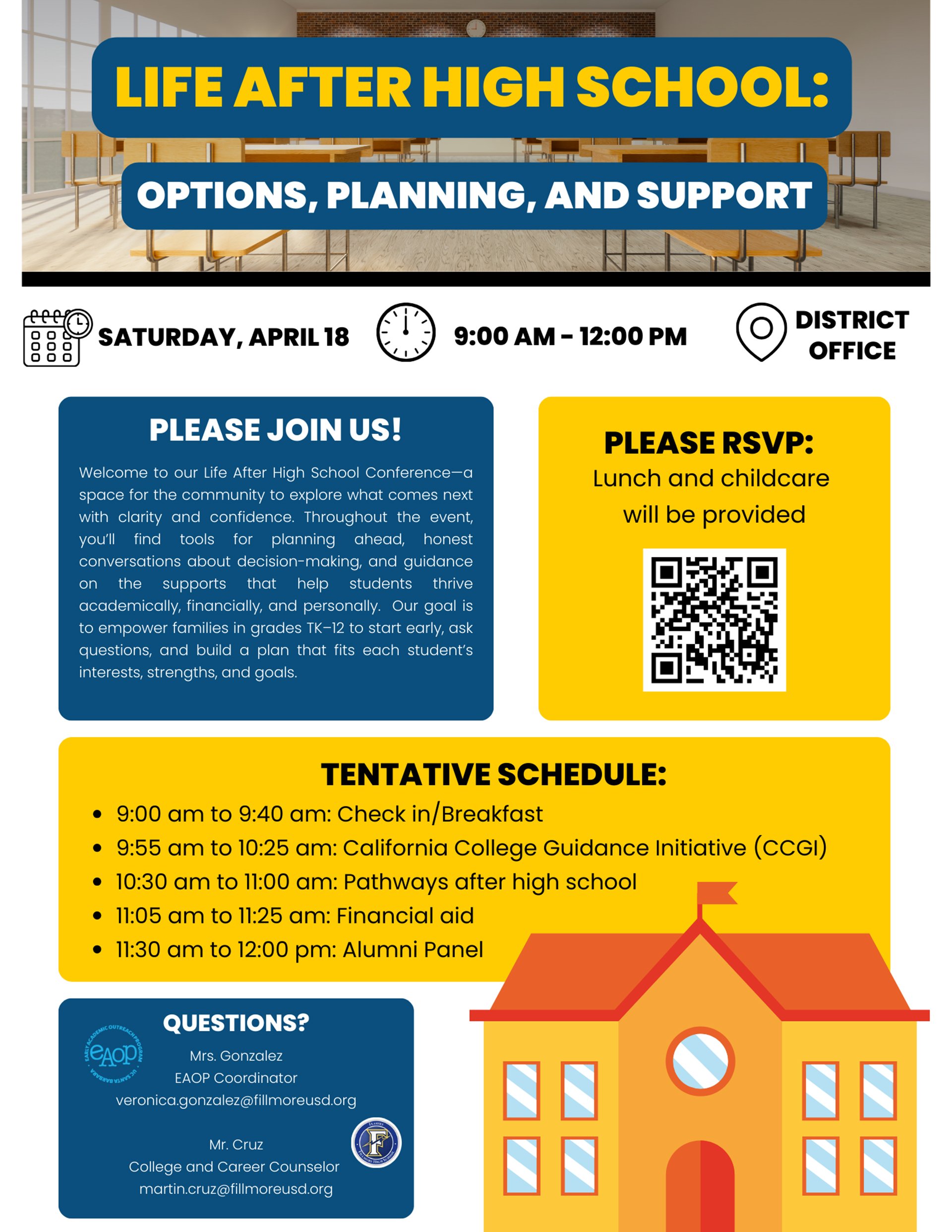 April 17, 2026 Fillmore Unified Reminder: Life After High School Conference [English/Spanish] April 17, 2026 Fillmore Unified Fillmore Unified