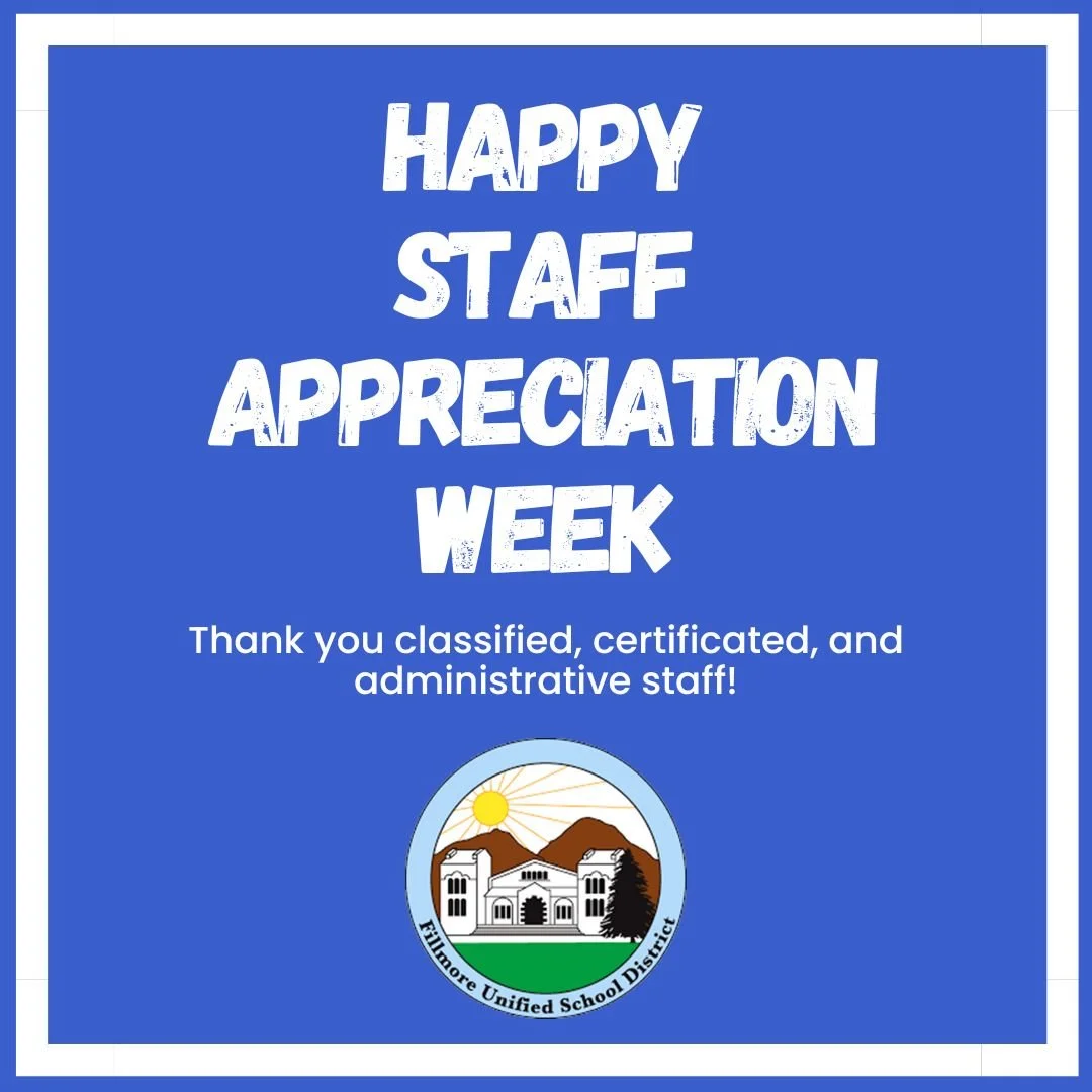 Please help us celebrate Staff Appreciation Week! Thank you to all of our classified, certificated, and administrative staff for all that you do each day for our students. You are appreciated!