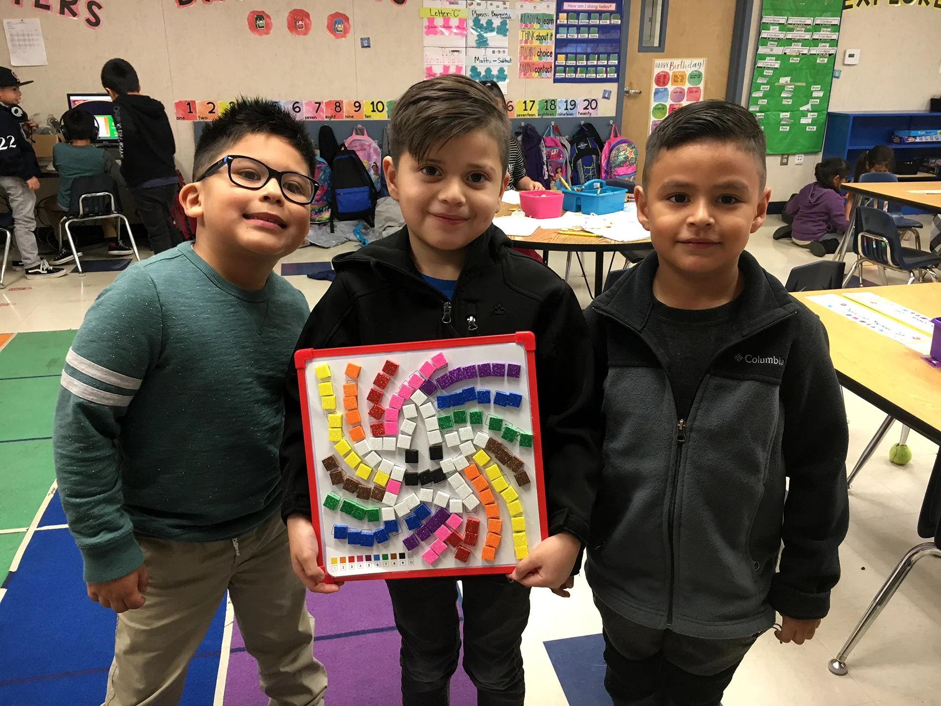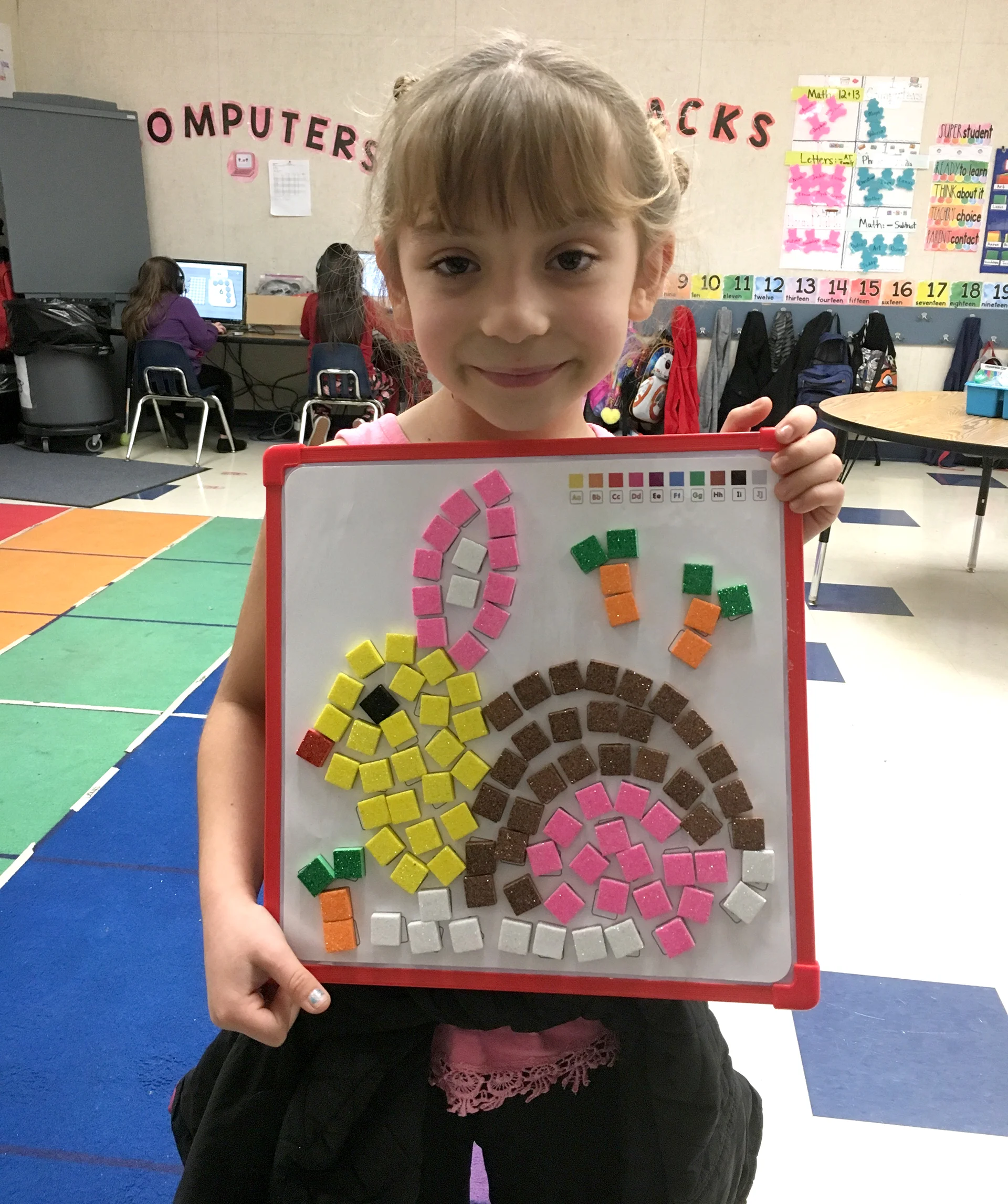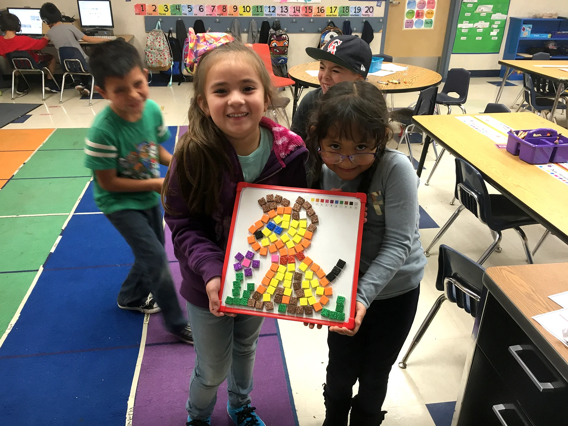Students in Ms. Figueredo’s 1st grade class have been experimenting with a new game to create mosaics. Students use teamwork to create their art piece considering design and color choice. I can’t wait to see what they create next!