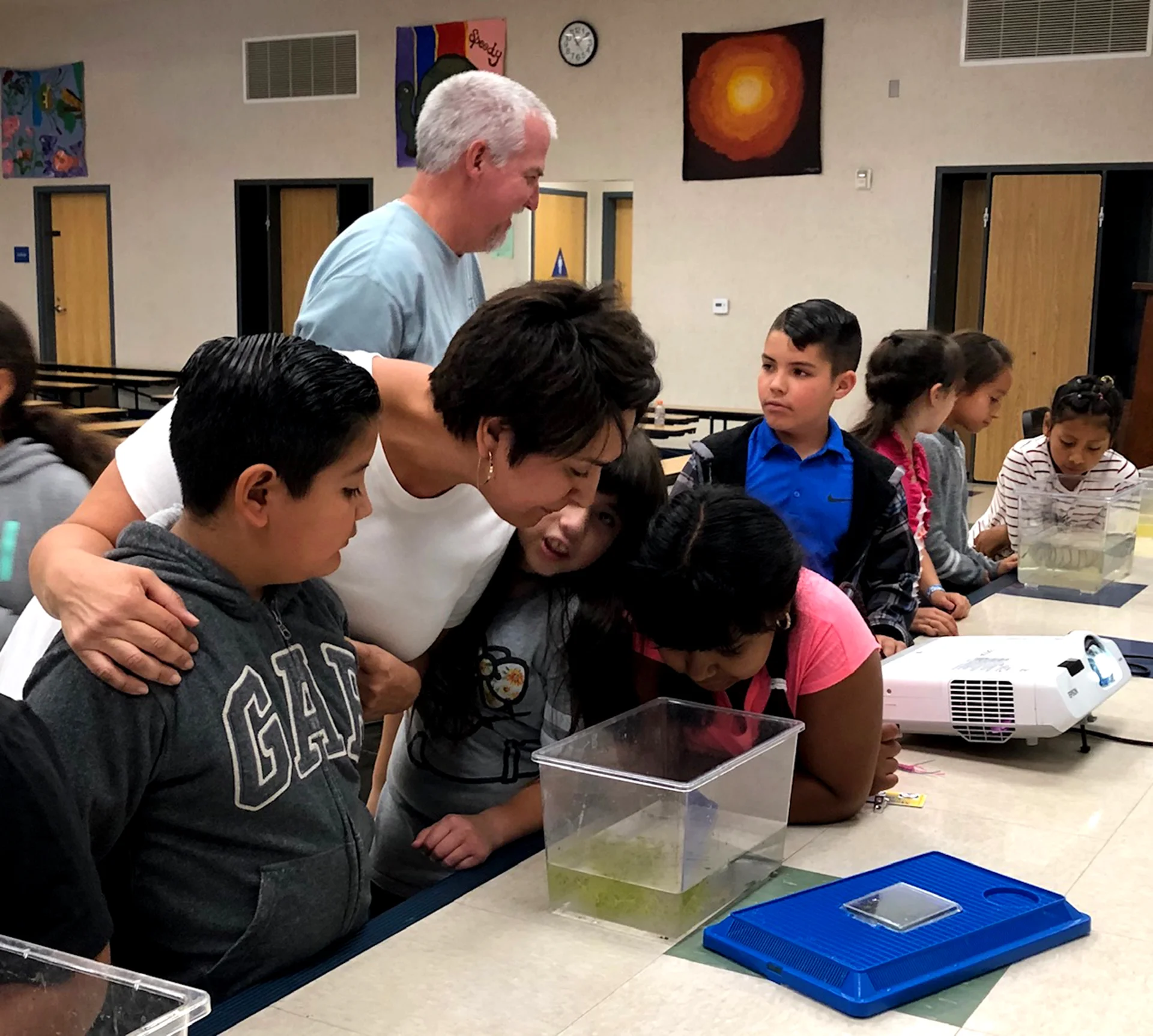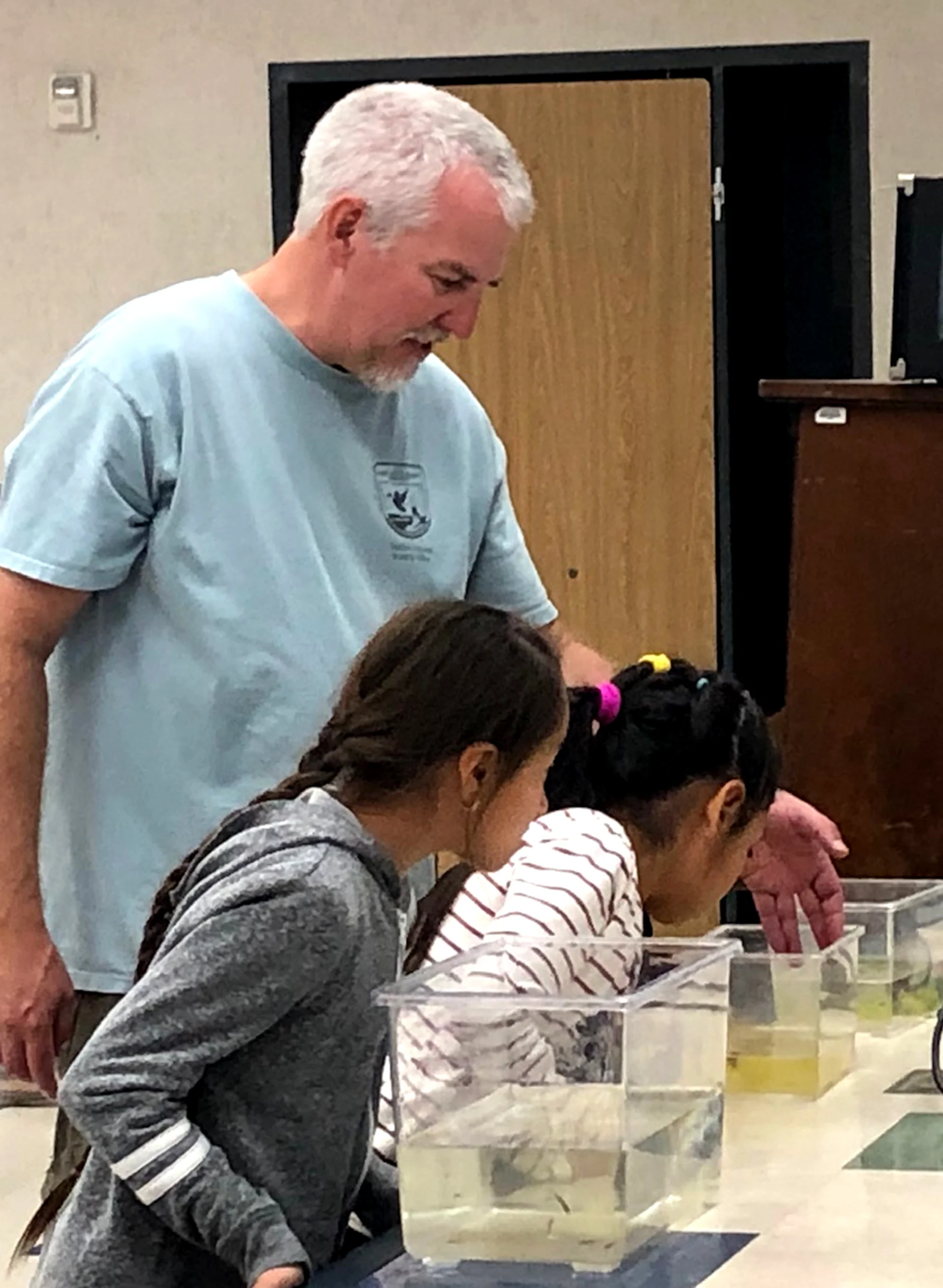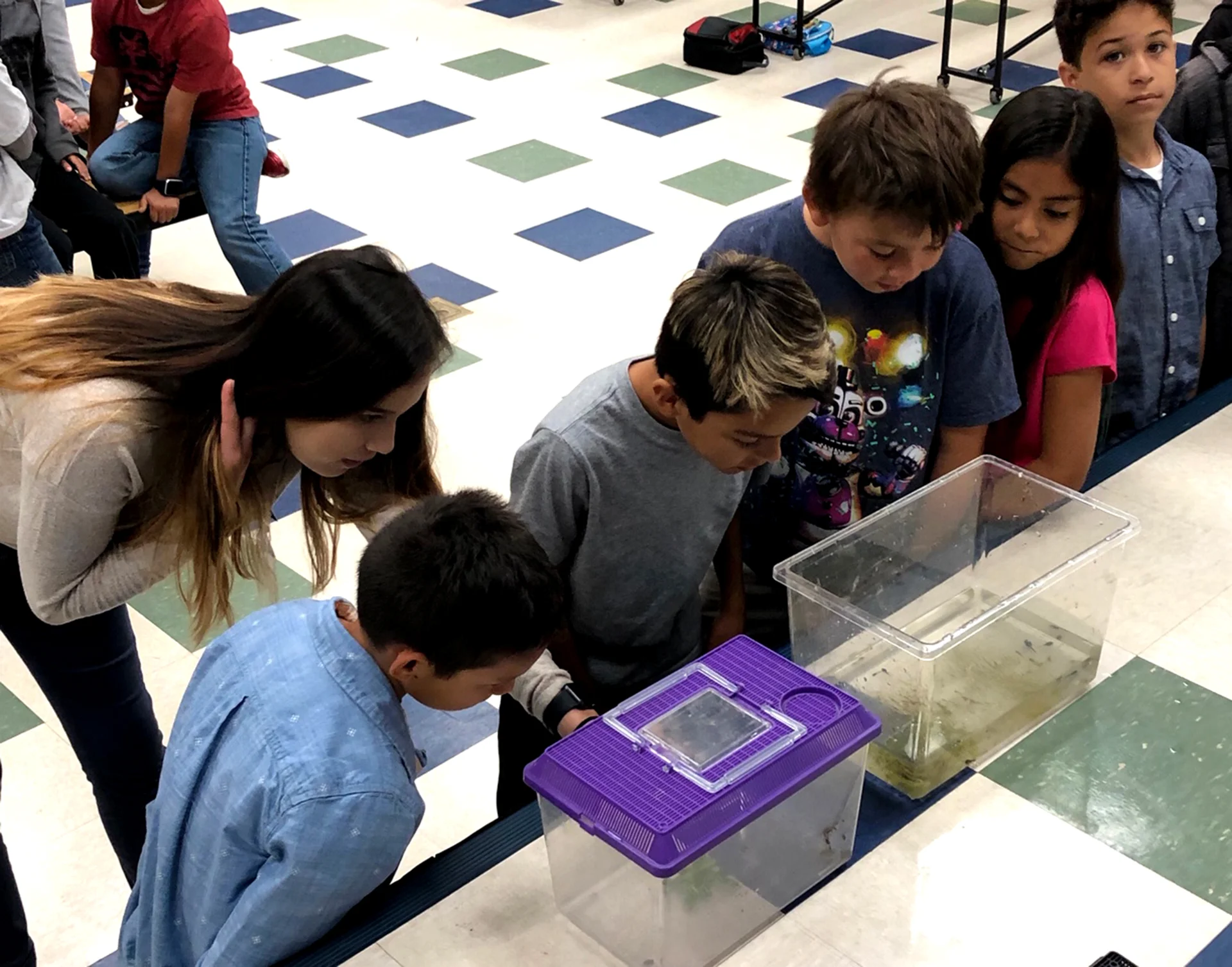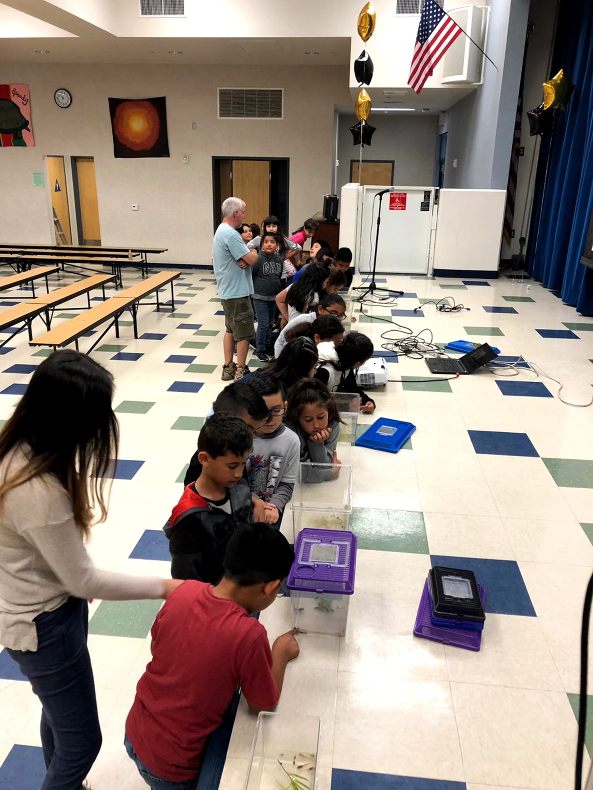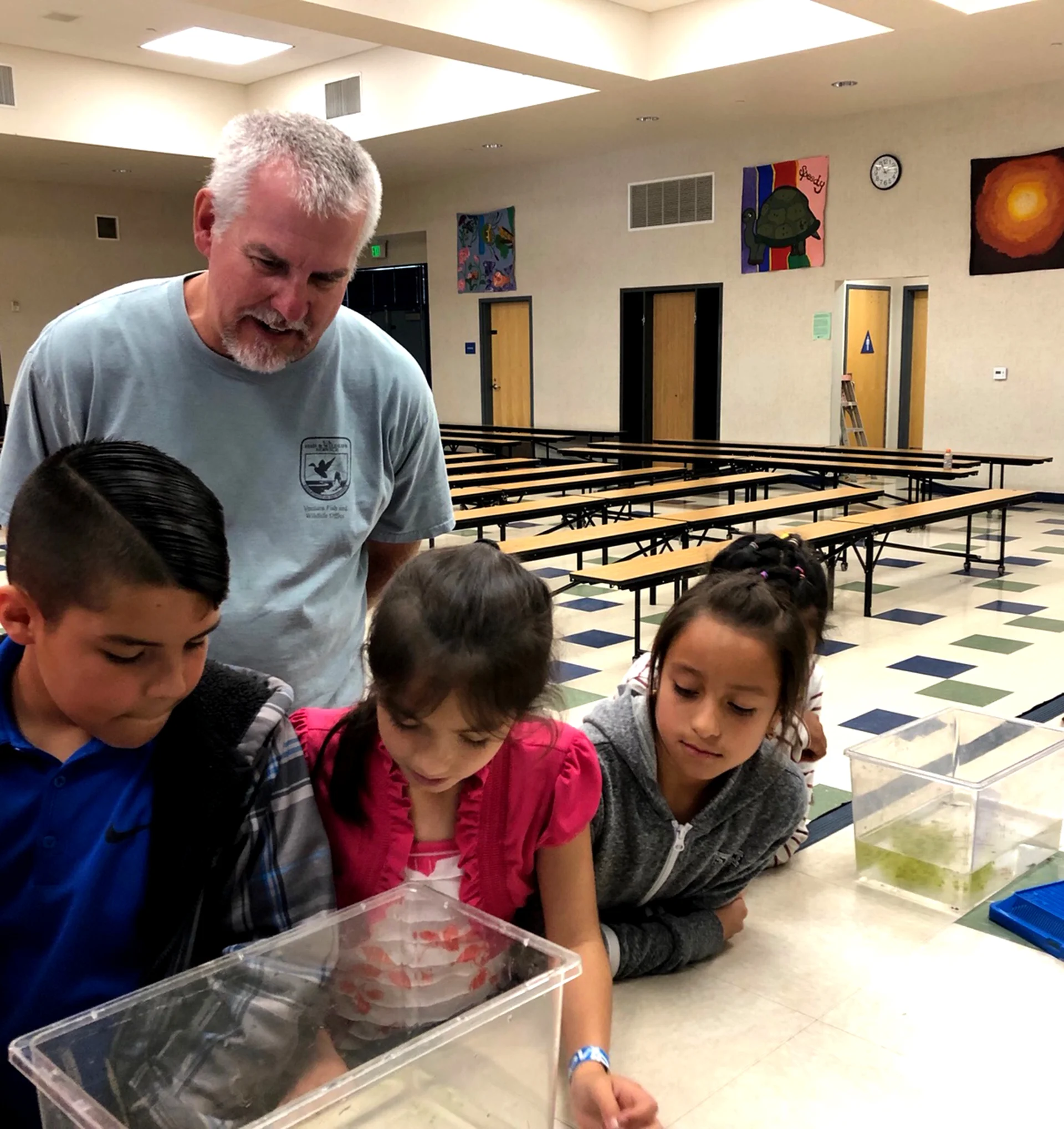 Michael Glenn and Leslie from the U.S. Fish and Wildlife Services came to visit third grade as a follow up to the river trip they did at the Sespe River in the spring. They caught local fish, tadpoles, and frogs from the Santa Clara/Sespe River for the students to observe.