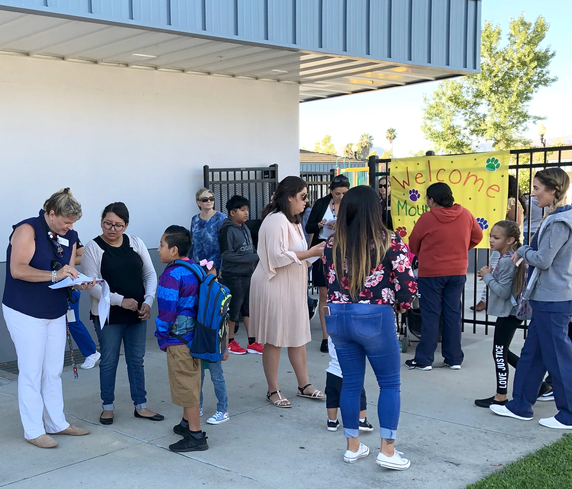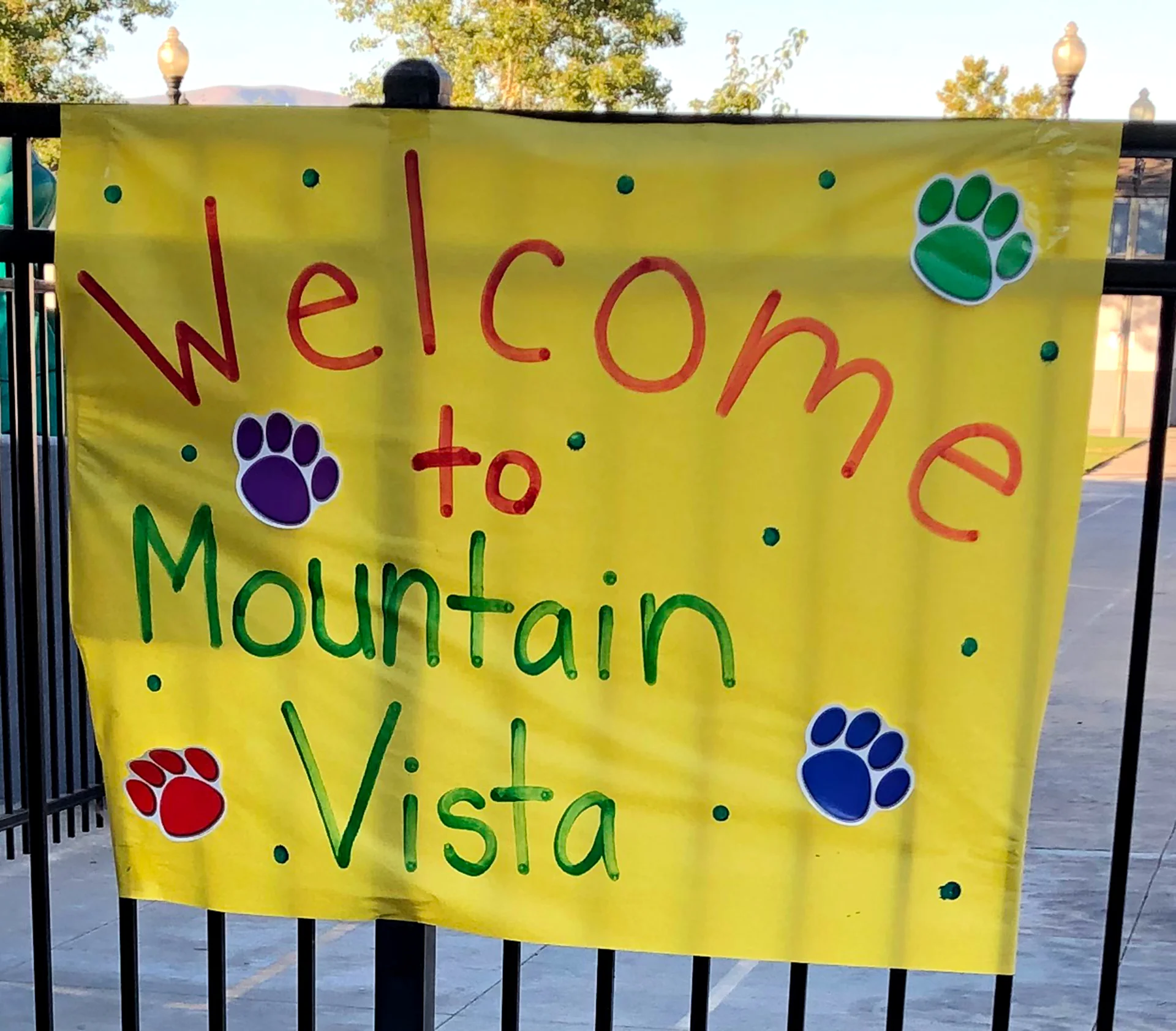 Mountain Vista Wildcats staff and teachers welcomed new and returning students to the 2019-2020 school year. (Above) Principal Christine McDaniels welcoming two students to school and helping them find their classroom on opening day.