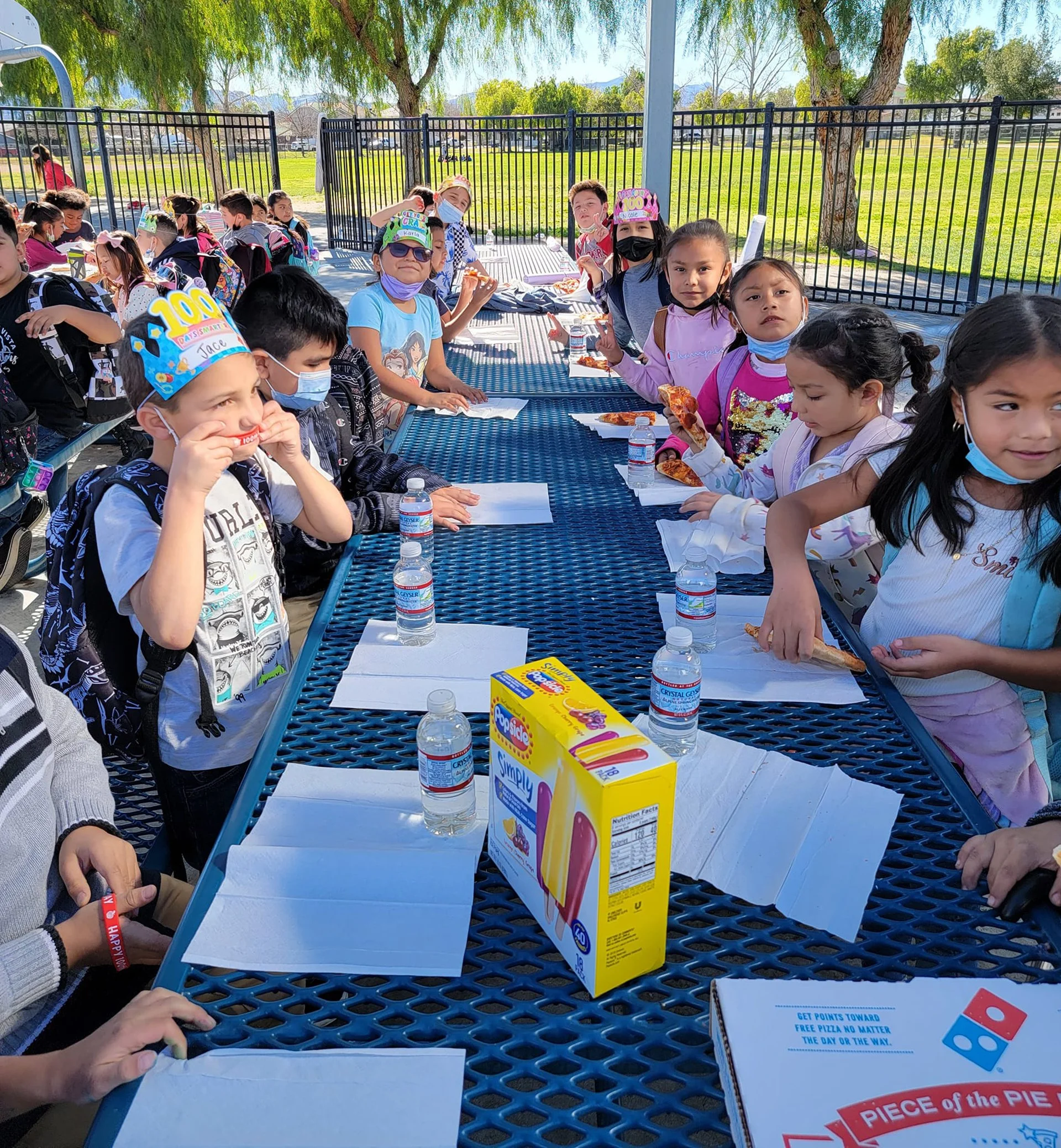 Congratulations to Mrs. Bronsten's and Miss Wright's classes! They completed their Mr. Potato Head for no tardies! Students enjoyed pizza and Popsicles. Who's class is next?