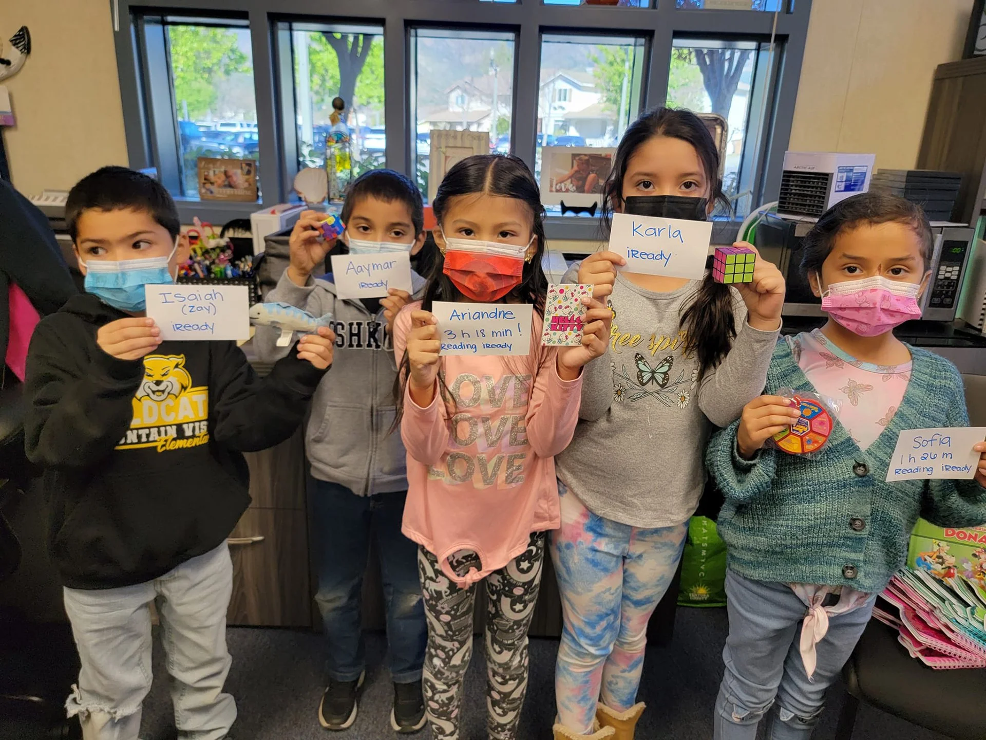 Kindergarten and 1st grade students earn prizes for completing i-Ready minutes and lessons.