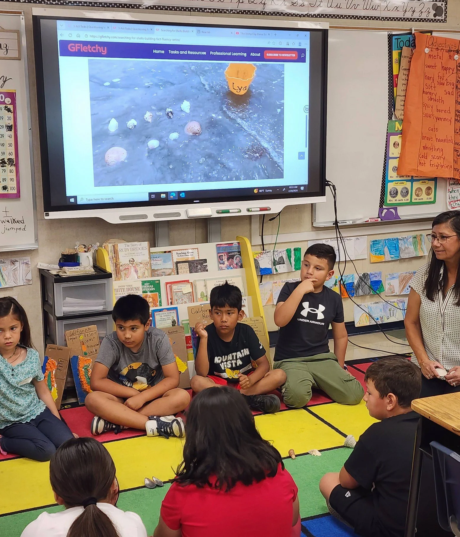 Mrs. Cruz's Saturday Academy do Notice and Wonder math talks with sea shells. They skip counted by 3's and noticed patterns.