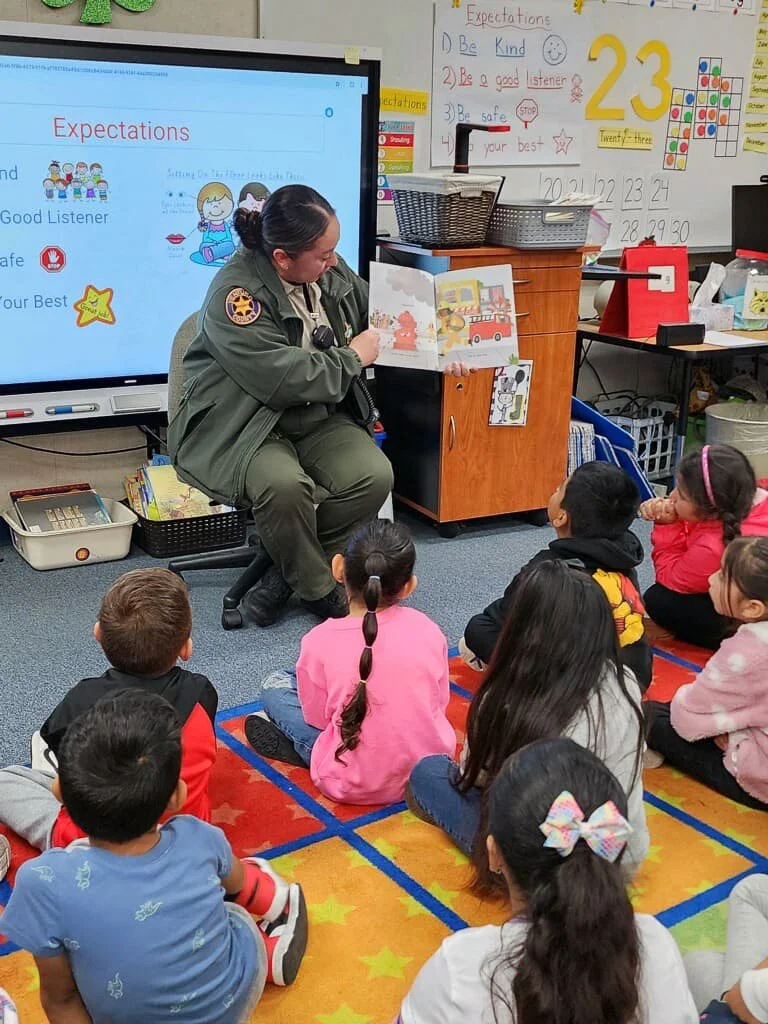Thank you Deputy Avila for reading with Mrs. Davis' Kindergarten students celebrating Read Across America Day.