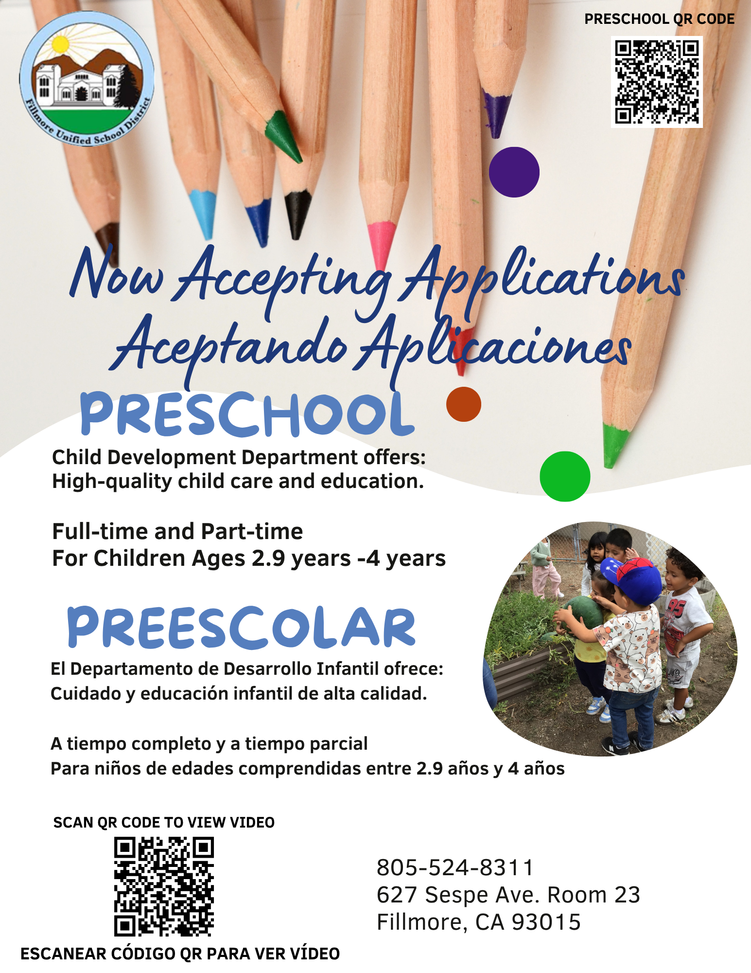 April 27, 2026 Fillmore Unified Preschool Enrollment Open Now! ALL Children 2.9 to 4 Years Old [English/Spanish] April 27, 2026 Fillmore Unified Fillmore Unified