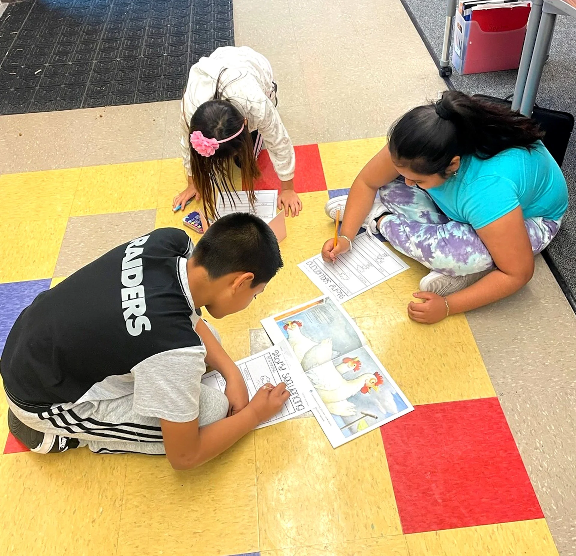 Third graders working on sequencing plus cause and effect with a literature selection, "The Rain Came Down," by David Shannon.