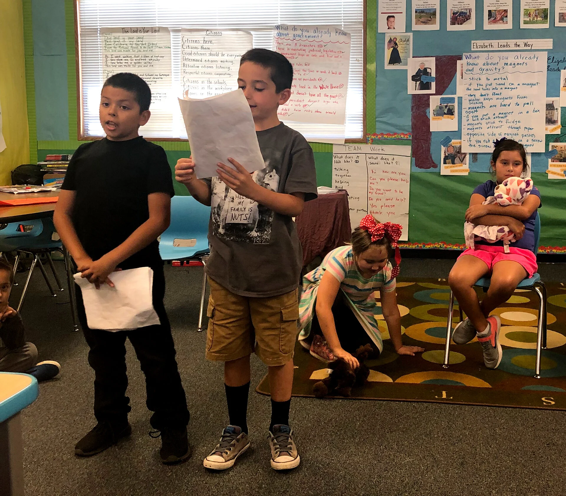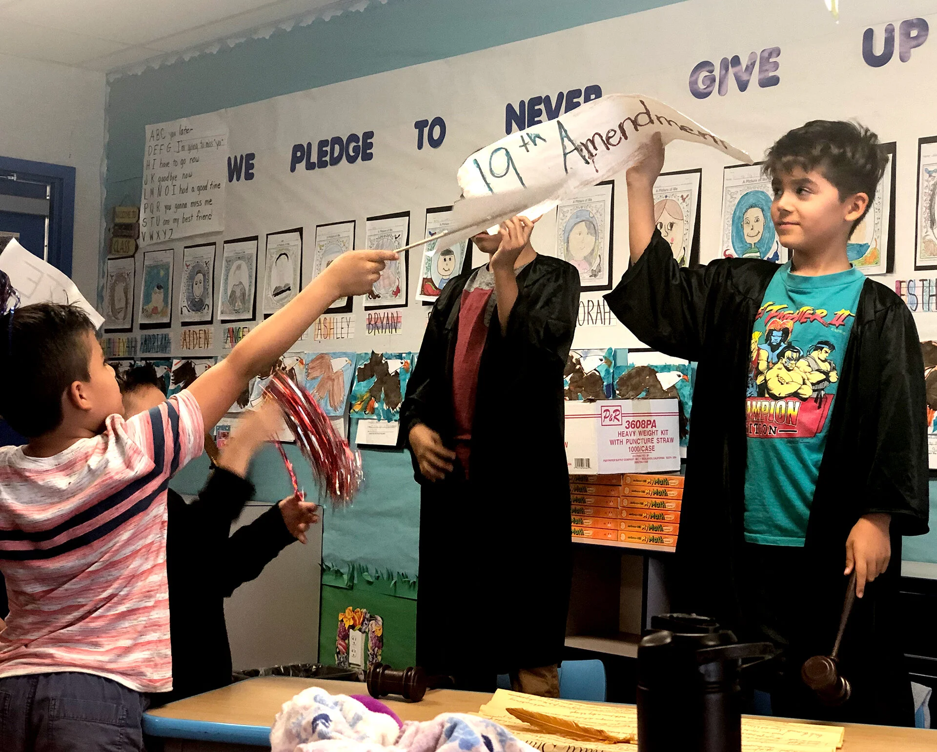Third grade students in Mrs. Gosslin’s class put on a play for parents during a recent gallery walk highlighting their SEAL Americana unit of study. Mrs Gosslin’s students’ performance focused on women’s voting rights.