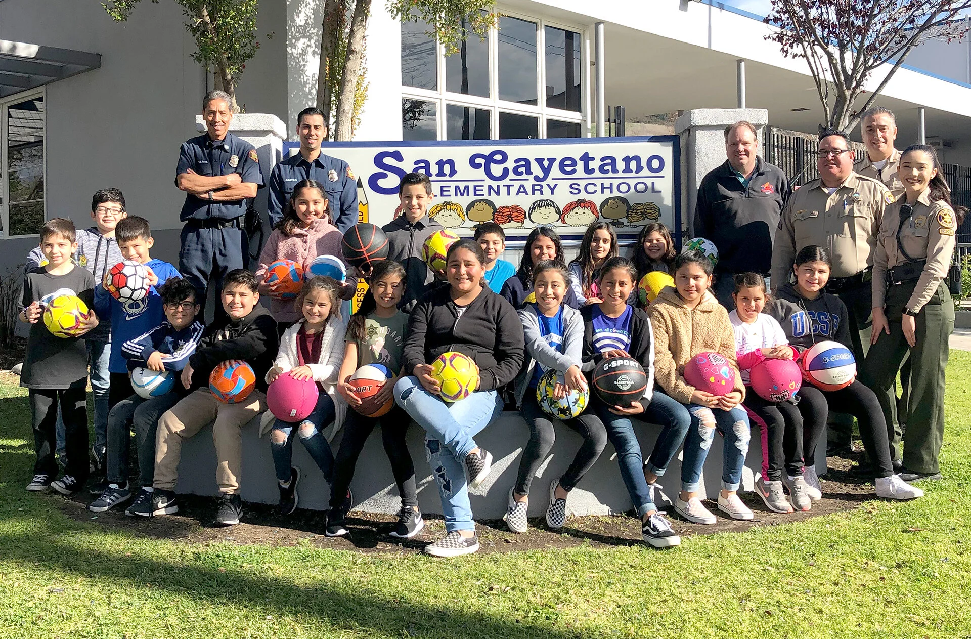 Today, the Fillmore Fire Department and Fillmore Sherriff’s Department together with Board Member Scott Beylik stopped by San Cayetano to meet with San Cayetano ASB Student Members for the “great ball giveaway.” Playground balls were donated to our school and to all FUSD elementary schools for our children to enjoy during recesses. Today also happens to be the kick off for San Cayetano’s “Be A Buddy-Kindness Matters Week,” hence the timing of this amazing gesture of Kindness was very fitting. The students and staff of San Cayetano thank our community leaders for serving as great role models of kindness and generosity and on behalf of our San Cayetano staff, students and families, we thank you from the bottom of our heart!