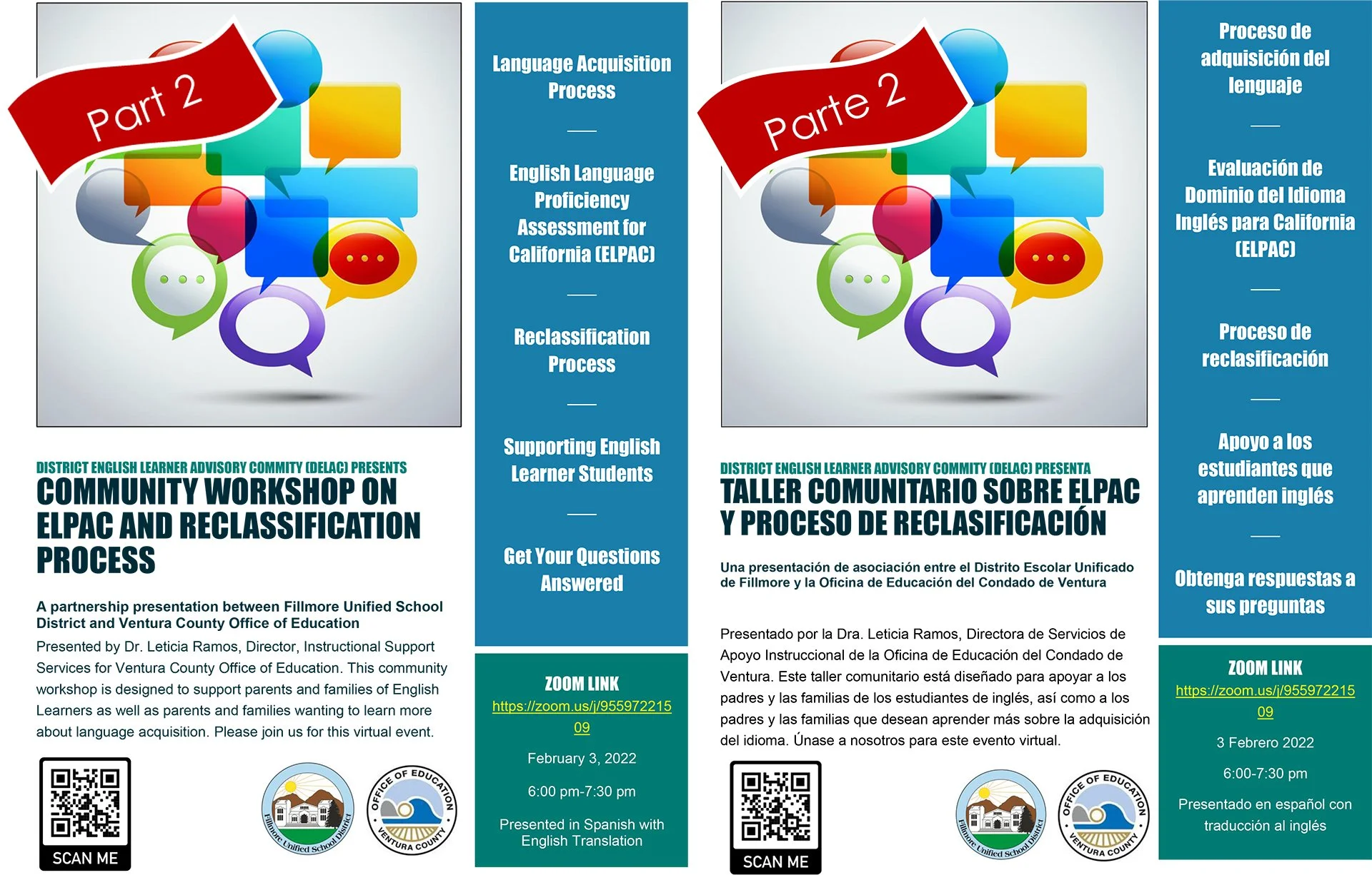 This community workshop is designed to support parents and families of English Learners as well as parents and families wanting to learn more about language acquisition.