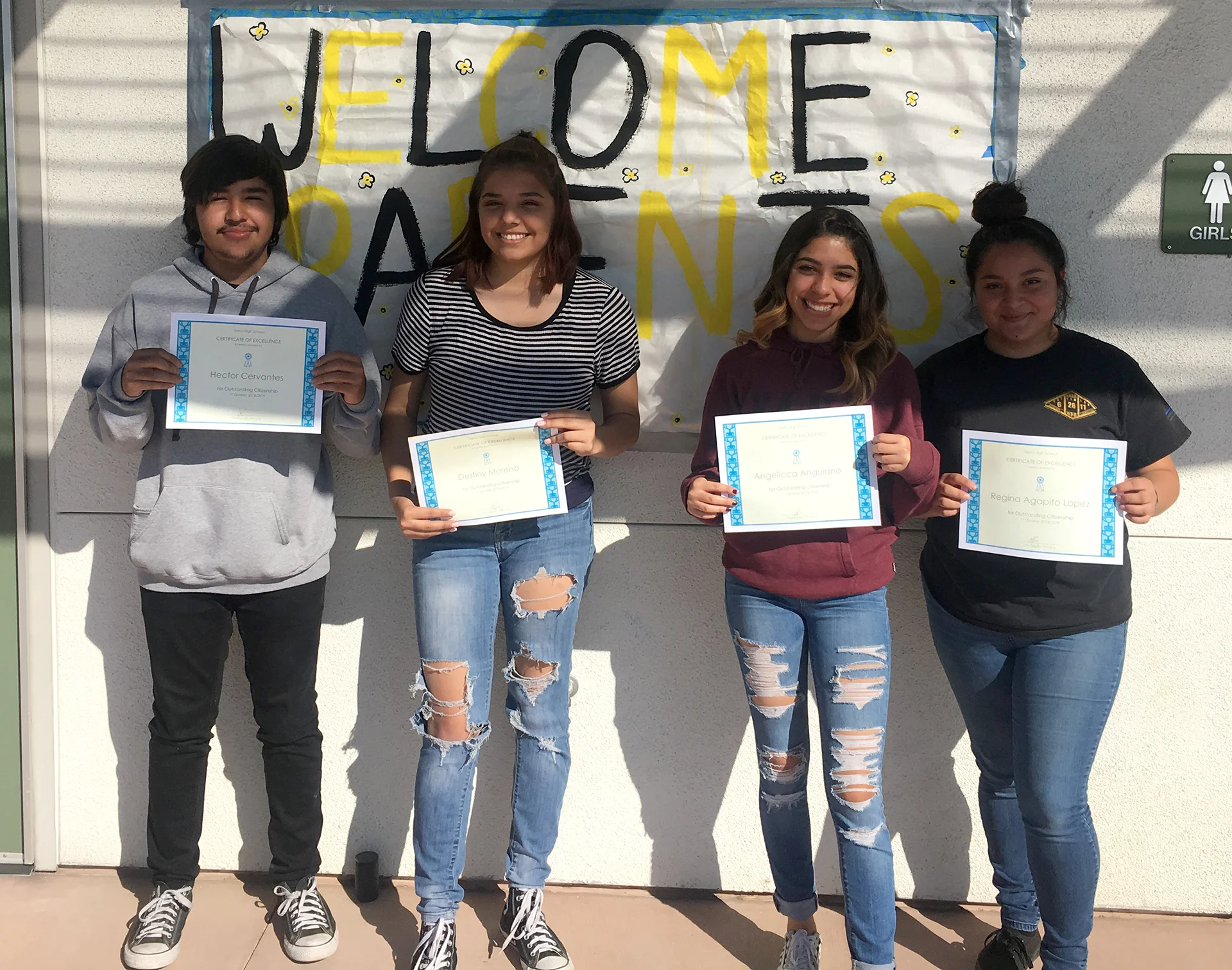 Hector Cervantes, Destiny Moreno, Angelicca Anguiano, and Regina Agapito received the Certificate of Excellence Award for quarter 1. Great job Warriors!
