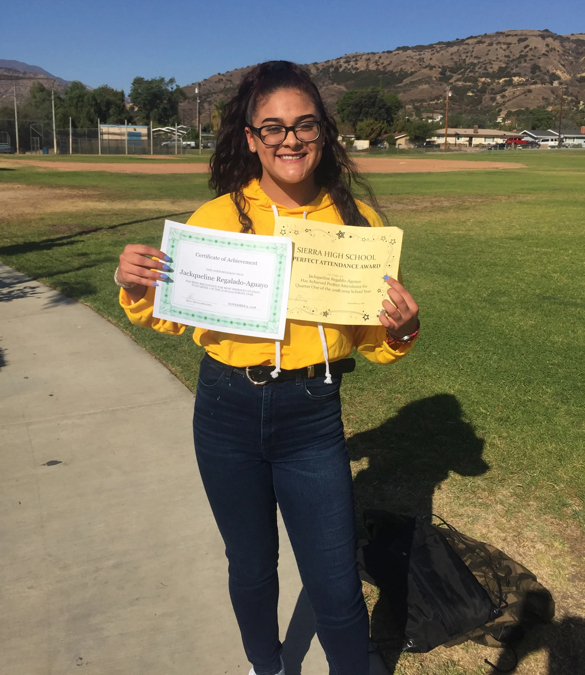 Jackqueline Regalado-Aguayo received a Perfect Attendance Award. She also was chosen by her teachers for her Outstanding Citizenship. Way to go Jackqueline!